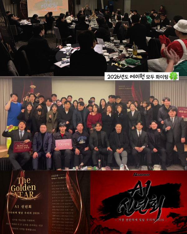 2026 A1 신년회 | The Golden YEAR 작성일 2026.01.29 15:55 컨텐츠 정보 14 조회 목록 본문 , A1의 2026년 같은 목표를 바라보며 같은 공간에서 웃고 박수치던 이 하루가 2026년을 만들어갈 우리의 첫 장면입니다. 각자의 자리에서는 책임을 다하고 함께 모였을 때는 마음을 나누는 시간. 그 균형이 우리가 함께 걸어갈 수 있는 이유라고 믿습니다. 함께라면 충분히 해낼 수 있다는 확신을 이 하루를 통해 다시 한 번 느꼈습니다. 2026년, 같은 방향을 바라보며 한 걸음씩 차분하게 나아가겠습니다. 관련자료 링크 https://www.instagram.com/reel/DTwP4IGk2T3/?utm_source=ig_web_copy_link&igsh=MzRlODBiNWFlZA== 7 회 연결 https://www.instagram.com/p/DTuBNiZk0ys/?utm_source=ig_web_copy_link&igsh=MzRlODBiNWFlZA== 7 회 연결 다음 2025 11월 A1 사업부 MVP 시상식 (어묵데이) 작성일 2025.12.08 13:55 목록